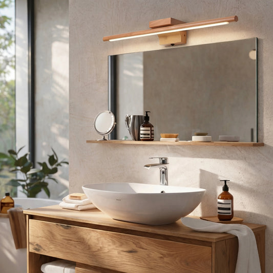 Applique murale bois massif LED – lumière froide, design nordique salle de bain