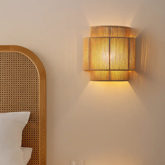 Applique murale japonaise rétro en rotin tissé pour intérieur moderne