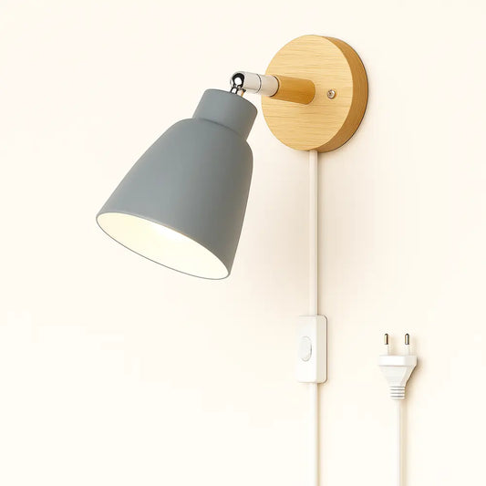 Applique murale minimaliste bois et métal – interrupteur sur câble