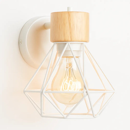 Applique murale industrielle bois & métal – Cage géométrique vintage design