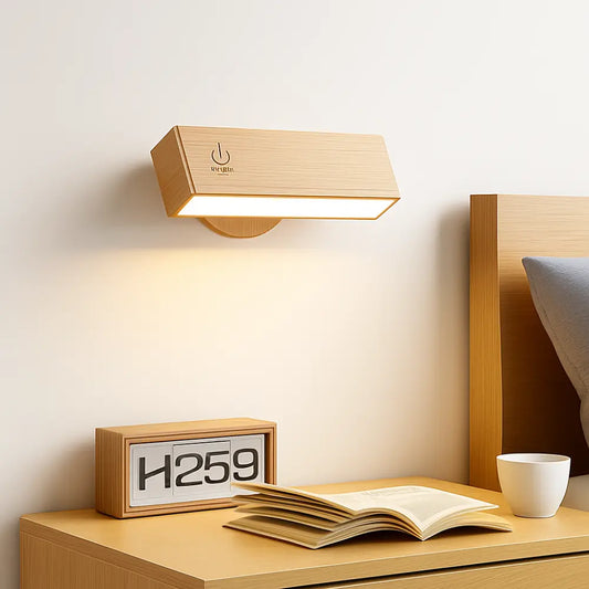 Applique murale LED tactile en bois – Rechargeable, fixation magnétique