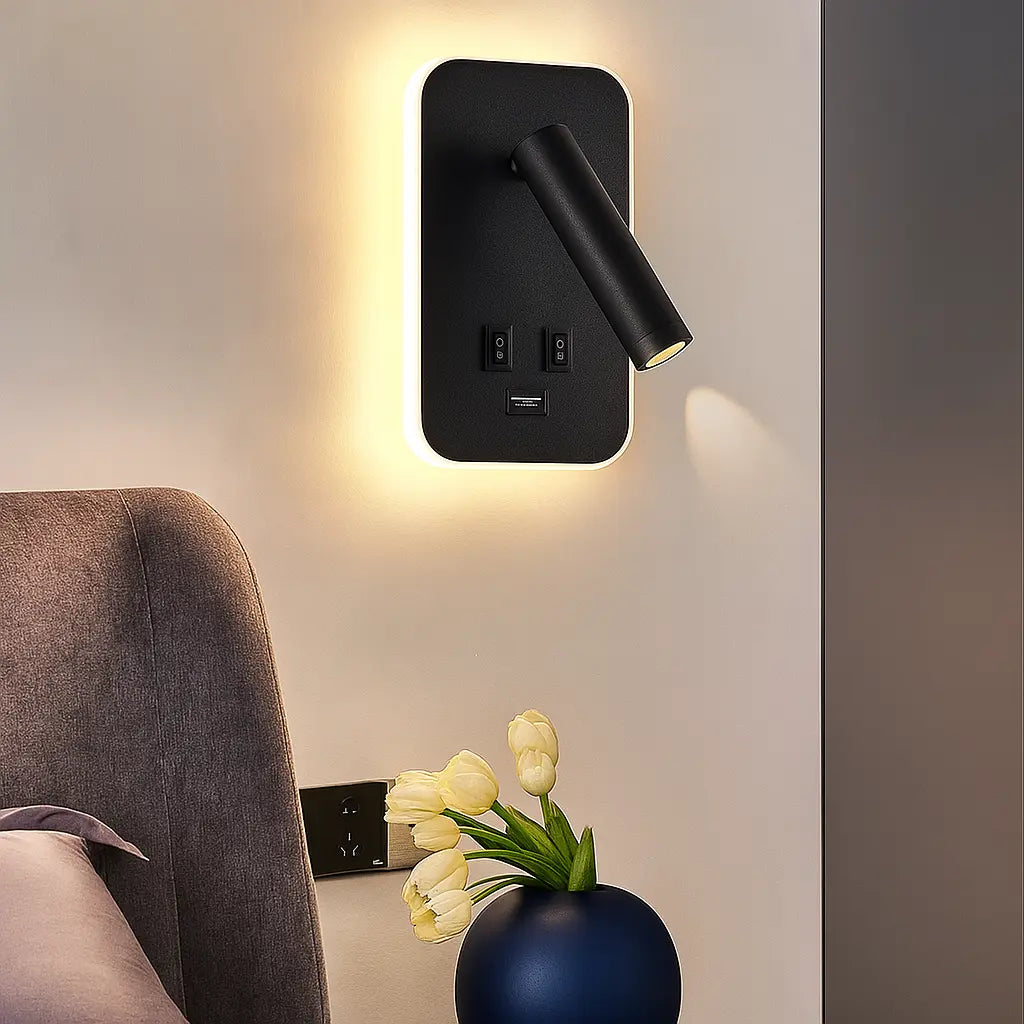 Applique murale avec liseuse LED orientable et port USB – Design moderne pour tête de lit