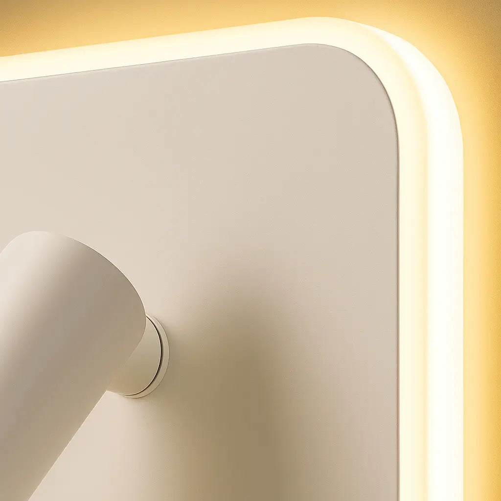 Parfaite pour une installation en tête de lit, cette applique murale LED offre un double éclairage : un halo mural doux pour l’ambiance, et une liseuse LED orientable pour une lumière de lecture ciblée.