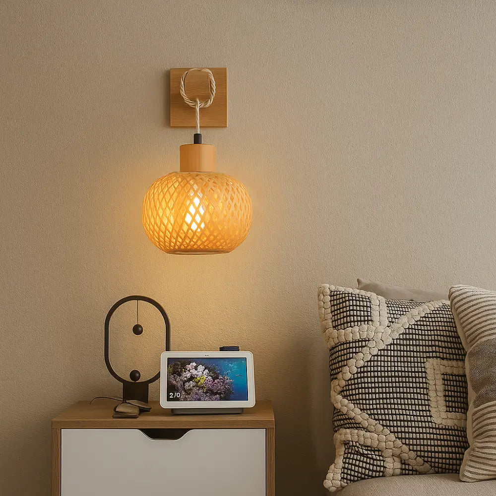 Créez une atmosphère réconfortante dans votre intérieur grâce à cette applique murale en bambou et bois clair.