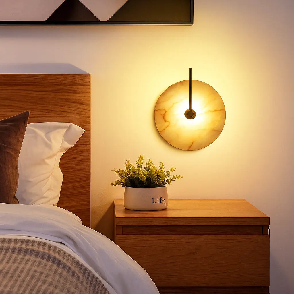 Applique murale LED ronde en marbre naturel – Design minimaliste