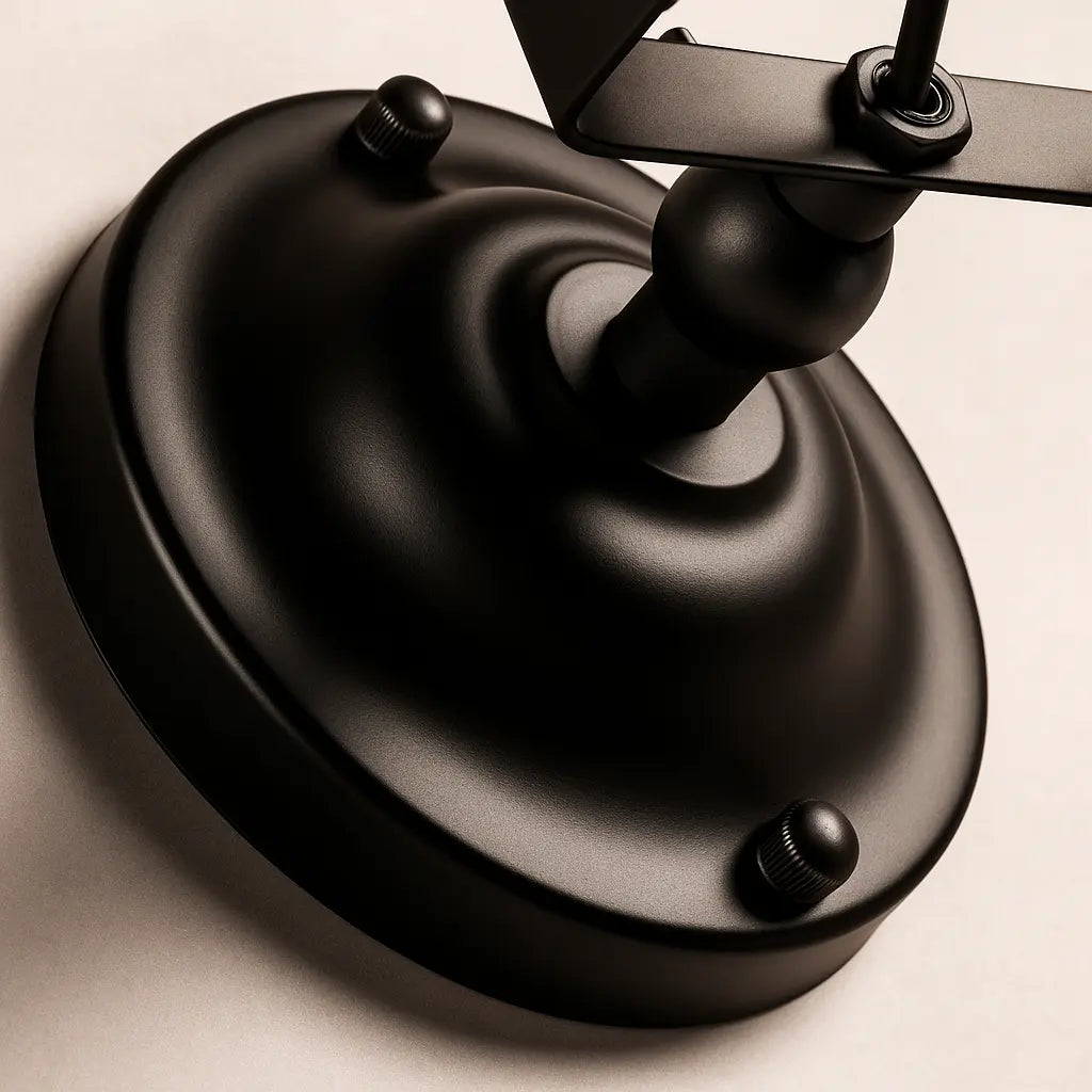 Disponible en finition noire ou brun effet rouille, elle s’installe facilement seule ou en duo pour un rendu décoratif symétrique. Son faisceau orientable permet d’adapter la lumière selon vos besoins : lecture, mise en valeur d’un mur ou éclairage d’ambiance.
